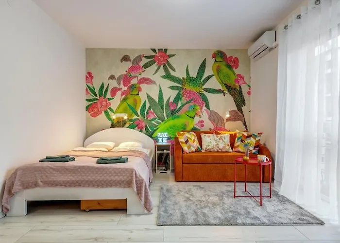 The 1-room Bohemian Breeze Apartment Budapest provides swift access to various city landmarks, such as the Corvin Cinema, located just a 6-minute walk away.